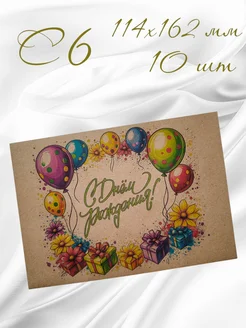 Крафтовые конверты С Днём рождения 10шт. С6