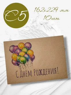 Крафтовые конверты С Днём рождения 10 шт. С5