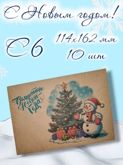 С Новым годом! крафтовые конверты 10 шт С6