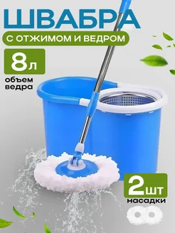 Швабра с ведром и отжимом верёвочная круглая с отжимом 8л