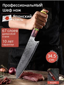 Шеф нож японский профессиональный кухонный из дамаск стали