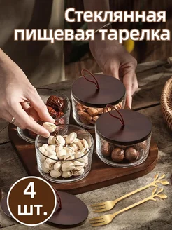 Менажницы 4 шт стеклянная с крышкой на подставке
