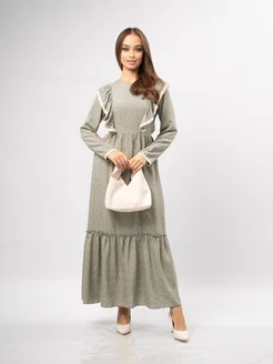 Винтажное осеннее платье бохо с кружевом и косынкой