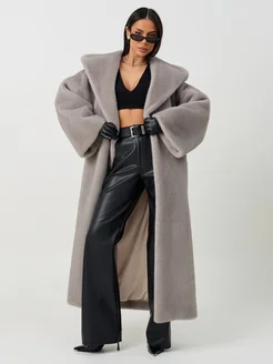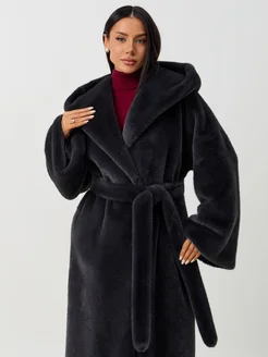 Длинная шуба искусственная с капюшоном из экомеха 2025 2026