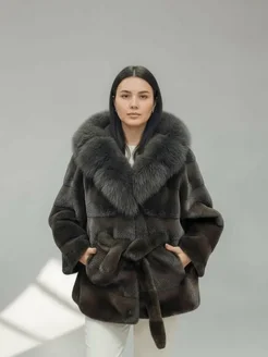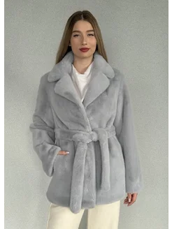 Полушубок автоледи искусственный мех под норку светло-серый