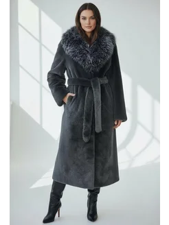 Шуба искусственная длинная под норку воротник песец
