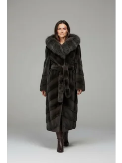 Шуба искусственная длинная под норку c капюшоном