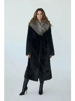 Шуба искусственная длинная под норку воротник лиса