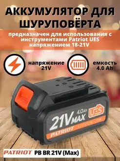 Аккумулятор для шуруповёрта BR 21V Li-ion 4,0Ah PRO UES