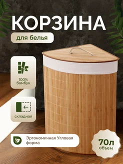 Корзина для белья угловая бамбуковая
