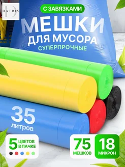 Мешки для мусора с завязками 35 литров прочные 75 шт