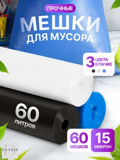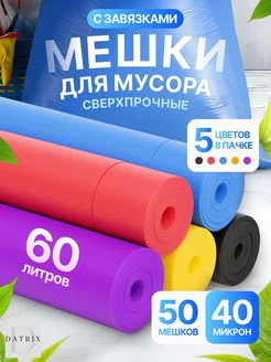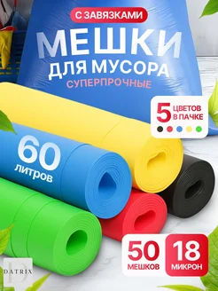 Мешки для мусора с завязками 60 литров прочные 50 шт