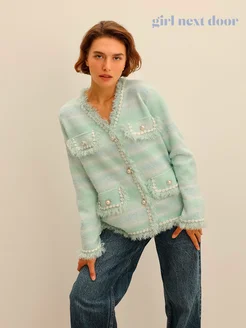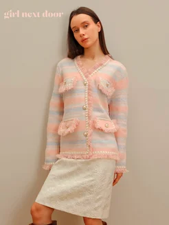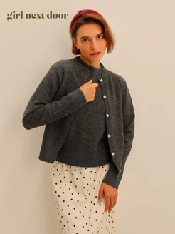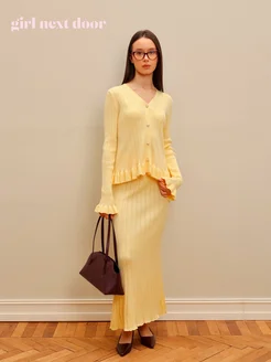Трикотажный костюм двойка из кардигана и юбки на осень
