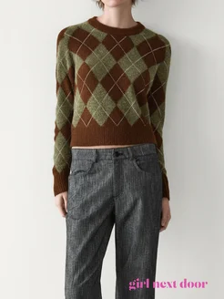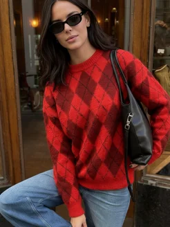 Свитер вязаный оверсайз с принтом аргайл, ромб