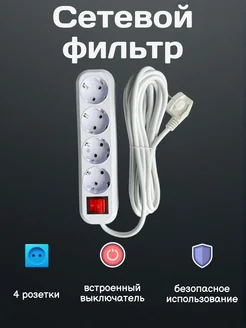Фильтр-удлинитель сетевой с кнопкой 5 метров 4 розетки