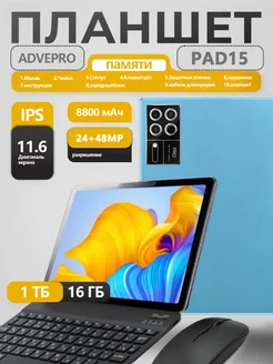 Планшет андроид с клавиатурой PAD15PRO,16+1024гб,синий