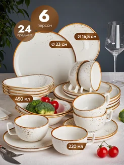 Набор фарфоровых тарелок на 6 персон из 24 предметов