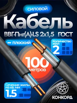 Кабель силовой ВВГ-Пнг(А)-LS 2х1,5 мм² ГОСТ, 100 метров