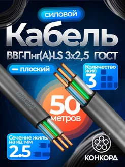 Кабель силовой ВВГ-Пнг(А)-LS 3х2,5 мм² ГОСТ, 50 метров