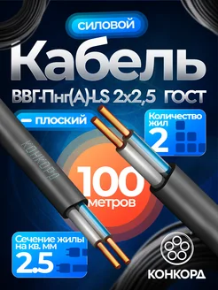 Кабель силовой ВВГ-Пнг(А)-LS 2х2,5 мм² ГОСТ, 100 метров