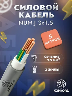 Кабель силовой NUM-J 3х1,5 мм² ГОСТ, бухта 5 метров