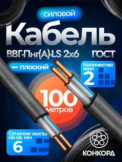 Кабель силовой ВВГ-Пнг(А)-LS 2х6 мм² ГОСТ, бухта 100 метров