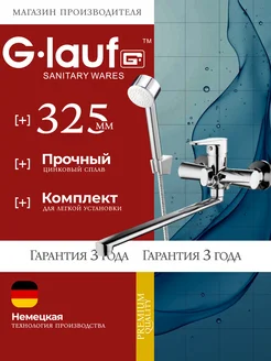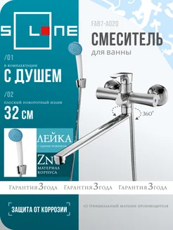 Смеситель для ванны с душем двухвентильный с длинным изливом