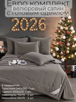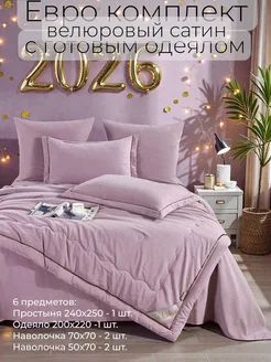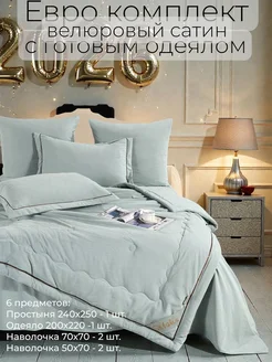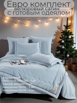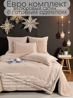 Комплект постельного белья с одеялом Евро, бархатный сатин