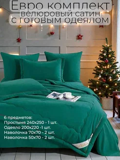 Постельное белье с одеялом Евро, велюровый сатин, бархат