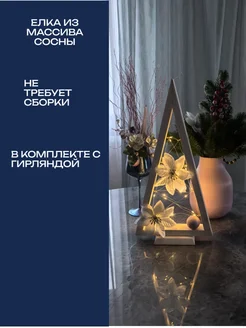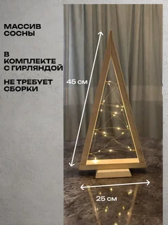 Елка деревянная настольная 45см*25см гирлянда в комплекте