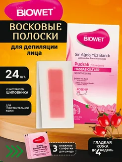 Восковые полоски для лица Biowet с Пудрой Шиповник