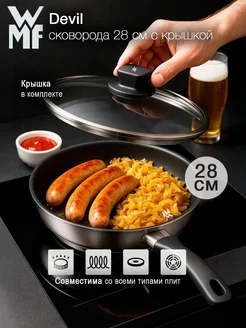 Сковорода Devil 28 см с крышкой антипригарная для индукции