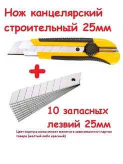 Нож канцелярский строительный 25мм +10 лезвий