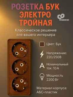 Розетка накладная с заземлением тройная бук (3 гнезда)