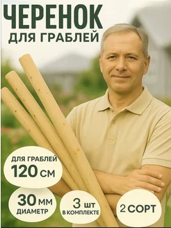 Черенок для граблей, 30 мм, 115-120 см,2 сорт,3 шт
