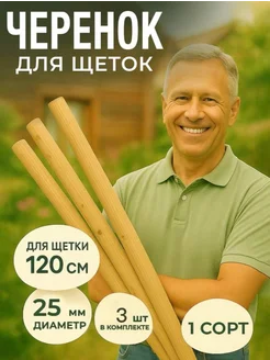 Черенок для щёток, 25 мм, 115-120 см,1 сорт, 3 шт