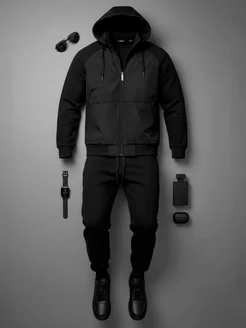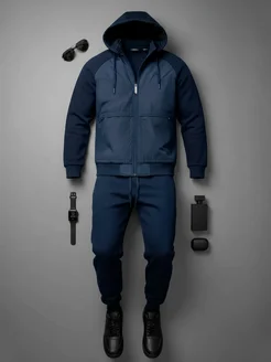 Спортивный костюм теплый с худи на молнии и с капюшоном