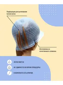 Шапочка парикмахерская для мелирования силиконовая с крючком