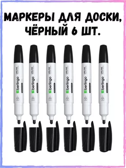 Маркер стираемый для белых досок, черный 6 шт