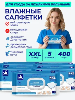 Влажные салфетки 400 шт для лежачих больных полотенца XXL