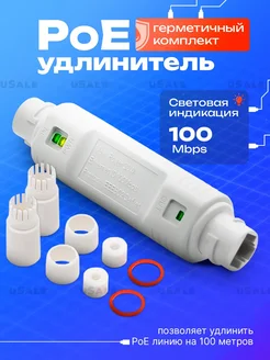 PoE-удлинитель, PoE-Extender проходной 100мб сек 100м