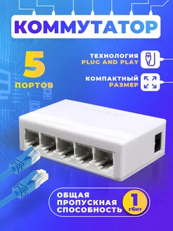 Коммутатор свитч 5 портовый 10 100мбит. 1гбит суммарно