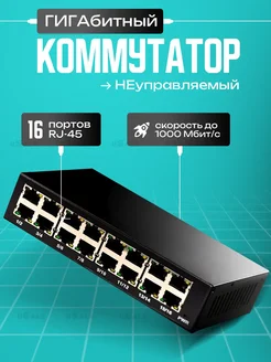 Коммутатор 16 портовый 1 Гбит с. Суммарно 32 Гбит с