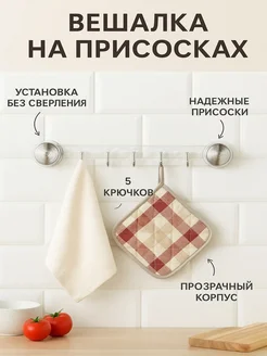 Органайзер-вешалка на вакуумных присосках с пятью крючками