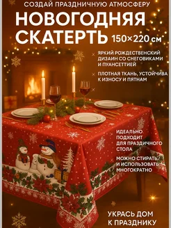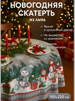 Скатерть лен на стол тканевая 150х220см новогодняя