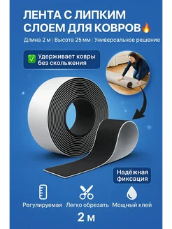 Липкая лента двусторонняя для фиксации универсальная 2м 25мм