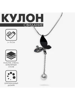 Кулон «Свидание» бабочка, цвет чёрно-белый в серебре, L=70 с