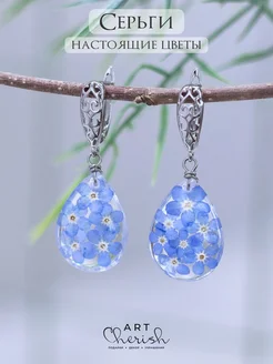 Серьги Незабудка в ювелирной смоле