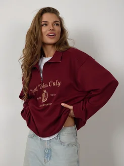 Свитшот полузамок без начеса на молнии поло y2k