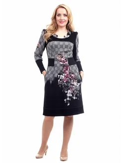 Платье футляр трикотажное в клетку с рукавом 3 4
